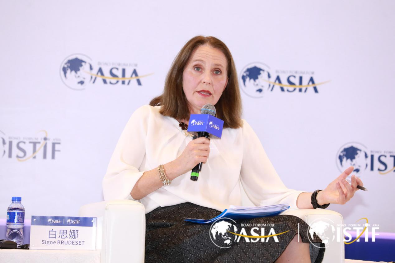 圓桌討論環節,白思娜表示,在綠色經濟轉型和可持續發展方面,中國可以和挪威進行技術和政策的交流,如電動車銷售政策、循環利用和塑料回收系統等,共同建設智慧城市,減少對環境的影響。Dhaval SHAH強調,全球很快將面臨新能源短缺的情況,怎么更好利用現有可再生能源,更好實現低碳化是大家需要思考的問題。徐東杰認為,中國新能源發展勢頭強勁,可再生能源裝機規模已達到總裝機量一半,但電量供應仍不足。科技創新和融合發展是解決問題的關鍵。阮芳指出,企業在減碳方面的動力主要來自于外因和內因。外因包括監管機構和政策的壓力,而內因則需要市場和技術的推動。掌握價值鏈的源頭、綠色化供應鏈、區域化和產業鏈拓展都是實現可持續發展的關鍵。 Carl F. FEY 表示,電動車在全球進行綠色轉型方面具有巨大潛力,挪威和中國都在推動電動車的發展,中國已成為全球電動車制造引擎,但仍需要加強品牌建設和創新來提升國際認可度。