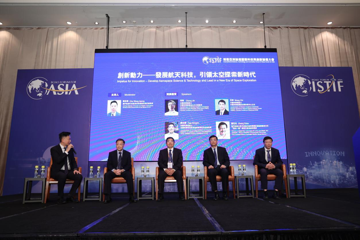 “創新動力——發展航天科技,引領太空探索新時代”分論壇由澳門特別行政區政府高等教育局代副局長謝永強主持。中國科學院院士、中國科學院紫金山天文臺臺長常進,中國科學院院士、中國科學院國家空間科學中心主任王赤,中國科學院院士、“天問一號”火星探測任務首席科學家、中國科學院地質與地球物理研究所研究員潘永信,月球與行星科學國家重點實驗室主任、“澳科一號”衛星任務首席科學家張可可四人圍繞航天科技與太空探索,分享各自在行星地球、近地環境、地月系統、日地空間、太陽系乃至恒星際宇宙領域的研究和科學進展,向觀眾展示了暗物質、空間科學、生命探測、地磁科學四大領域的最新研究成果和未來展望。